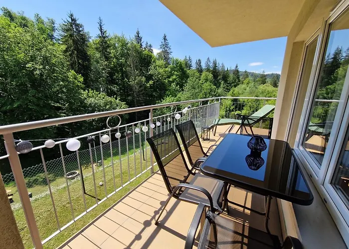 Apartmán Na Bukowej, Apartament Widokowy Z Duzym Tarasem je 1-ložnicové ubytování s parkováním zdarma, místem na piknik a akvaparkem, nachází se ve městě Visla. Apartmán se nachází 1,5 km od Wiślańska Ciuchcia a jen 5 minut chůze od Museum of Skiing.